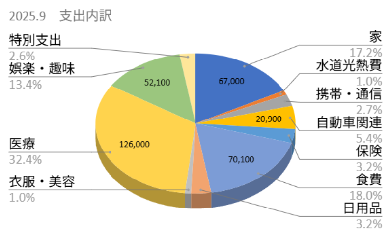 支出面では今月は39万円で昨年36万円からより3万円程増加しました。9月中旬頃から沖縄での生活に戻っています。