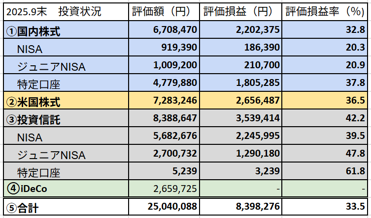 ここ数か月は家計黒字が続き、投資の評価益も順調に推移しています。