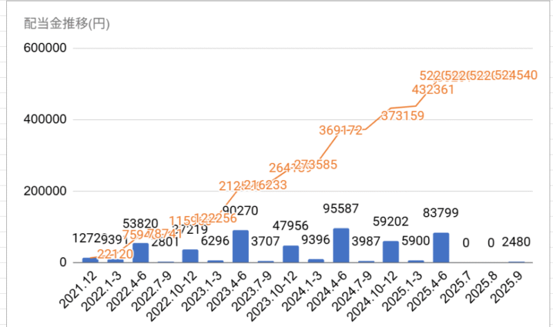 金融資産4,000万円、年100万円の配当金を達成しセミリタイアすることを足元の目標に、2021年から家族で目指しています。